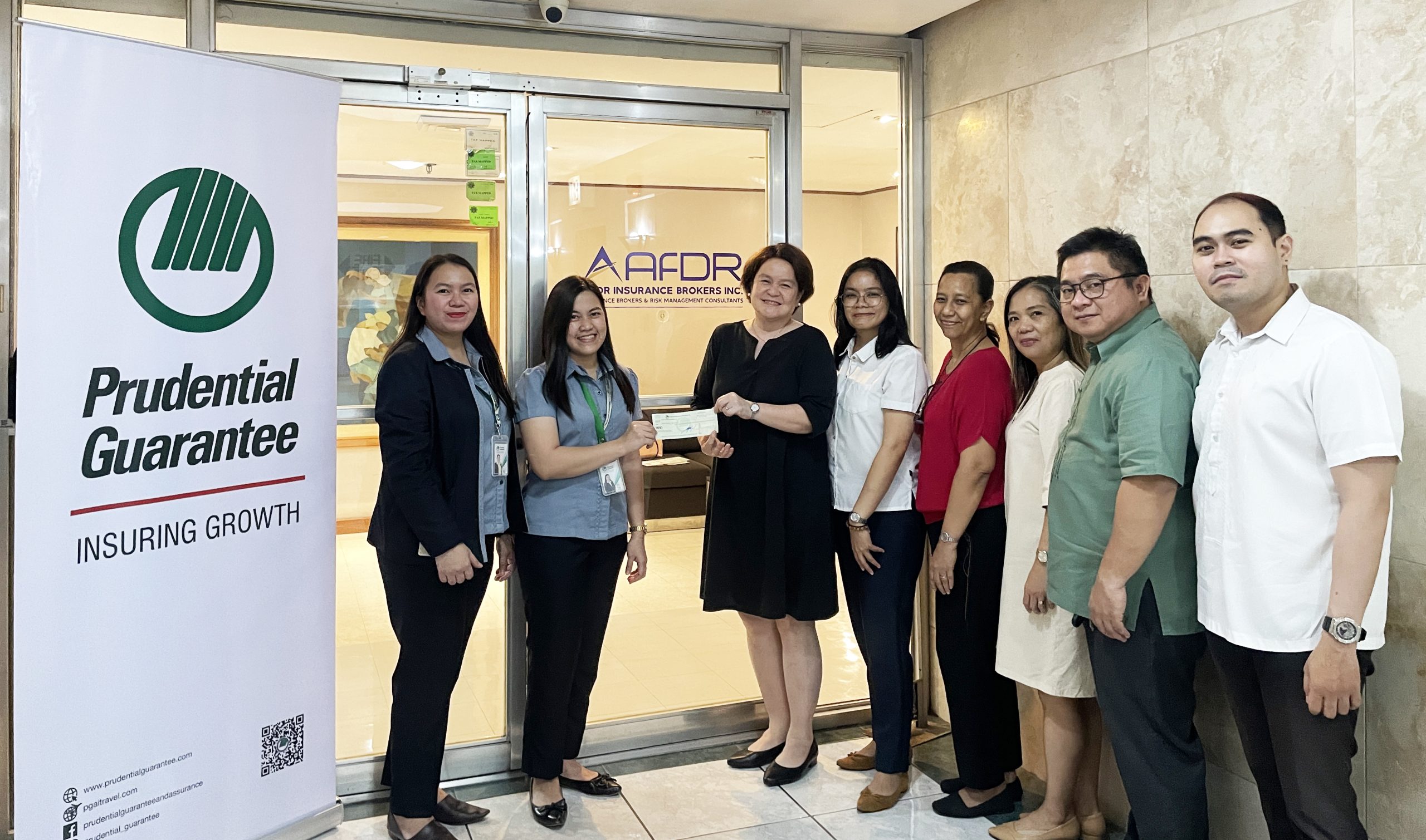 The AFDR Insurance Brokers, Inc. conducted two activities for children’s causes as part of its annual CSR initiatives. The group supported “All My Children,” a medicine donation drive for the National Children’s Hospital that helped address matters related to Thalassemia. It also led in collecting various learning materials for the Special Needs Education program of Angono Elementary School. Prudential Guarantee and Assurance, Inc. supported AFDR by donating P50,000 to worthy causes. Receiving the check from PGAI was Ms. Meg del Rosario Isleta, Board of Director of AFDR Insurance Brokers.
